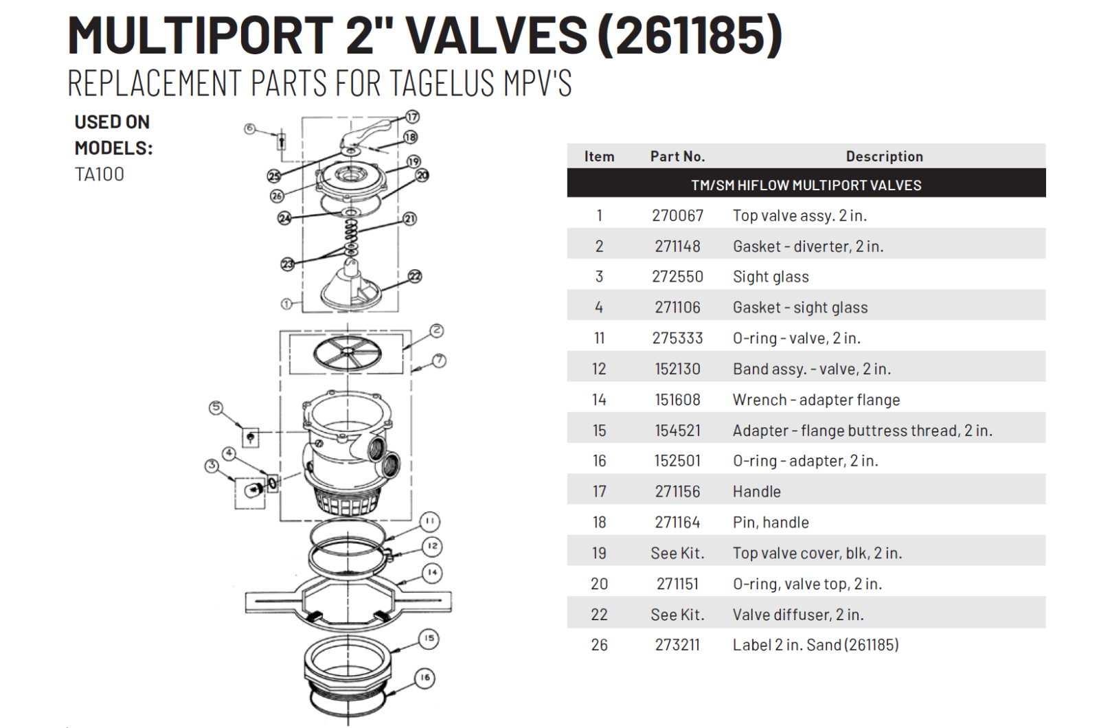 Pentair Tagelus Multiport Valve Top Cover Oring TA100 - 50mm Valve - Top Mount and Side Mount HiFlow Multiport Valves